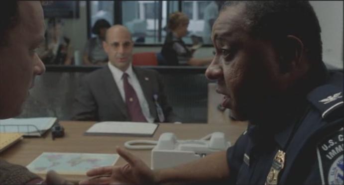 Für Flughafenchef Dixon stellt Navorski verwaltungsmäßig ein Problem in seinem Verantwortungsbereich dar. Er muss das Problem lösen, um die Funktionalität seines Verantwortungsbereiches zu erhalten und letztlich seine eigene Akzeptanz und damit seine Karriere zu sichern. Aus diesem Grund versucht er das Problem auf andere Behörden zu verlagern und scheut nicht davor zurück, einen Fingerzeig auf illegales Handeln zu geben, indem er Navorski schildert, dass es Gesetze zum Schutz von Ausländern gäbe, die glaubhaft Angstempfinden vor einer Rückkehr in ihre Heimat versichern könnten und dass es lediglich notwendig sei, bei ihm (Navorski) diese Angst nachzuweisen, damit ein beschleunigtes Abschiebeverfahren für ihn eingeleitet werden könne. Dixon versucht, Navorski auf diese Art und Weise an eine andere Behörde weiterzugeben, da er sich dieses “Problems” entledigen will. Da Dixon Navorskis Bedenken bezüglich dieses Plans bemerkt, versucht er mit allen Mitteln, ihn zu überzeugen und legt dar, wie weit sich die für Asylanträge zuständigen Behörden im Rückstand befinden und stellt in Aussicht, dass Navorski sich bis zur Bearbeitung seines Asylantrages folglich in New York City aufhalten könnte. Damit will Dixon ihn letztlich dazu drängen, seinem Vorschlag zu folgen. Dabei lässt er nichts unversucht, um Navorskis Bedenken zu der Konfrontation mit der Asylbehörde zu zerstreuen und weist überdeutlich auf die illegale Handlung hin: “[...] aber die meisten, ob sie´ s glauben oder nicht, kreuzen beim Amt einfach nie auf!”